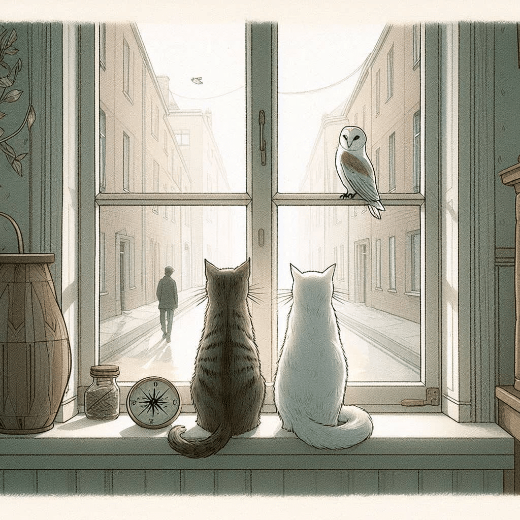 سایه‌ی یک جغد سفید از روی شیشه لغزید و روی لبه‌ی پنجره مکث کرد.