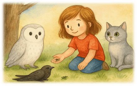 From the heart of the dream-sea comes Kafteki, a small white owl with feathers the color of seafoam. Seeking friends and a place in the world, Kafteki meets Mina, a kind little girl, and a silver cat. Together they rescue a weak migrating swift, care for a silent fig tree, and slowly bring a lonely child out into the sunlight. This is a gentle, lyrical tale about friendship, empathy, and the quiet magic of caring for nature.