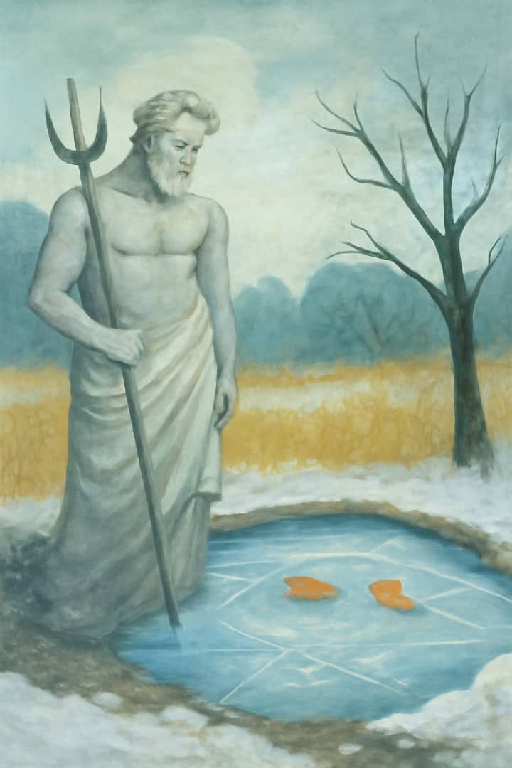 A poetic, symbolic reflection on past relationships and the inner strength to protect one’s peace. The narrator recalls a marble Poseidon in her mind—more a memory than a threat—and the choice to live with her own still waters, untouched and entirely her own.